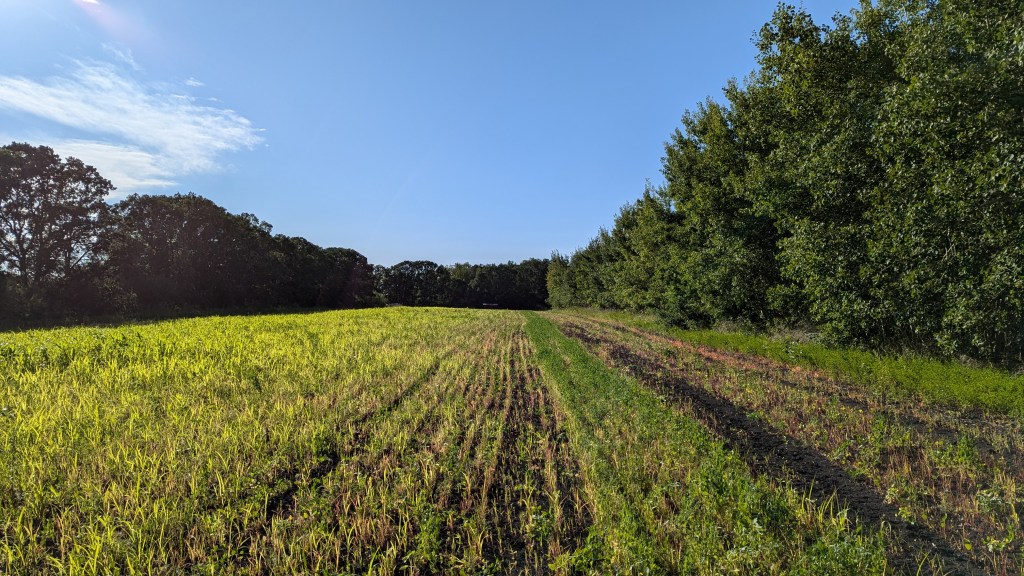 It’s pretty exciting to go through this process for the first time and have such a good result. On the next update I’ll stand in the field for scale, but the Sorghum is about 3 feet tall at this point. The rain allowed quite a lot of our cover crop seeds to get going quickly. While there are some weeds present, for the most part, they are now firmly in the understory of the cover. Further rains in July helped keep this crop going.