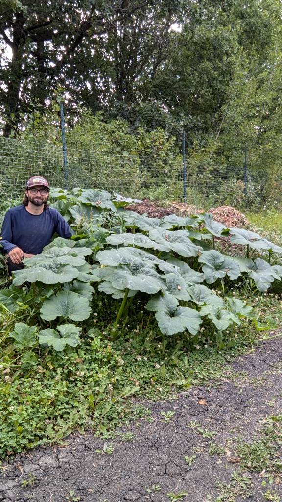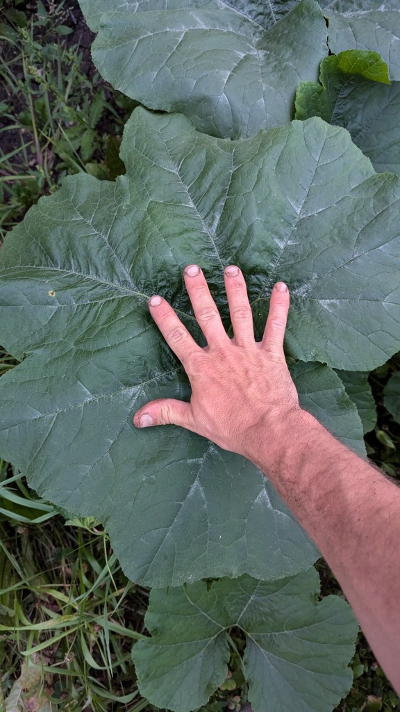 There is no fertilizer applied, and this squash germinated at least a month after the rest of our squash was planted….nor was it ever watered. This is 100% biologically-fueled growth.