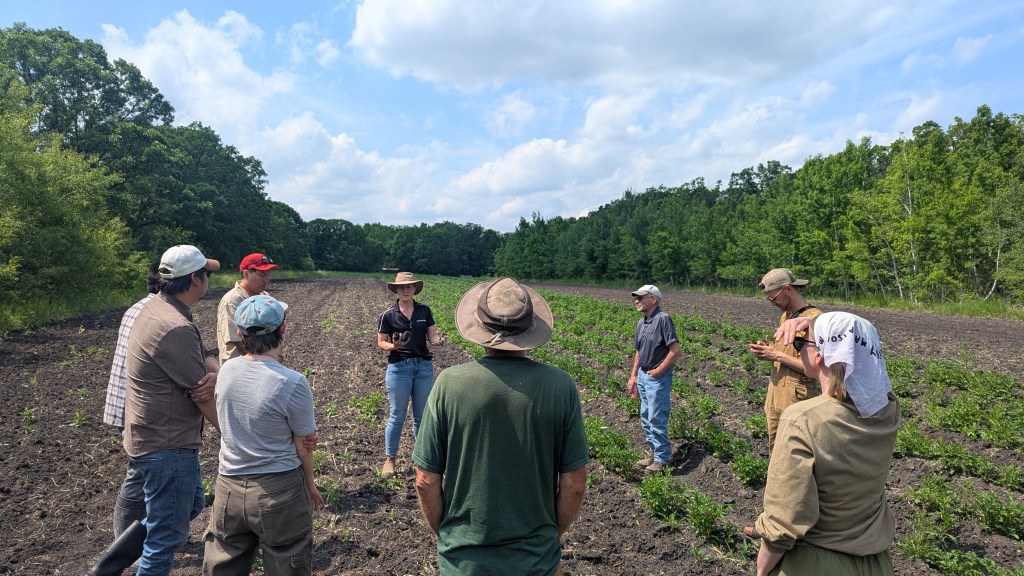 We’re going to break format here with the first-ever Thursday post. I was a bit exhausted after a 14-hour day yesterday which, frustratingly, ended in sprayer nozzles plugging up from a compost extract while trying to do a foliar nutrition trial as the sun was setting. But I still wanted to write about something exciting that happened last week, which is that we had a real soil scientist visit our farm for a tour/workshop.