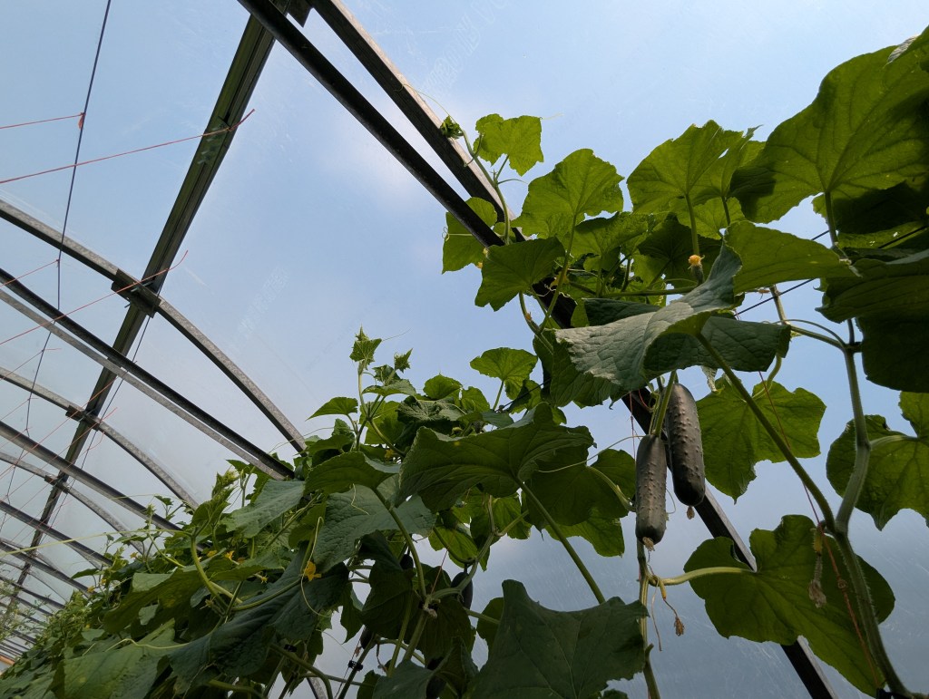 2. The greenhouse is way too high. The wire is set near the apex of the greenhouse, at least 10 feet. This is problematic! I’m only 5’6″. Even with an apple box, I’m 7 feet. If I reach high, I can get to 9′. So getting these vines over the wire for umbrella style – not to mention harvesting cucumbers at 8/9 feet – unreasonably difficult.