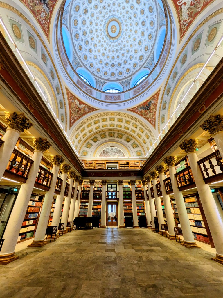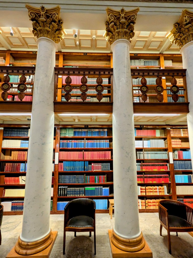 This is the National Library of Finland. When you walk into this library, you are required to check your coat and bags, there is no food or drinks allowed, and you can only bring with you a phone, laptop, or notebooks. In the first room you encounter, there is a collection of the most recognizable names across all subjects, volumes of their correspondence, and their work. The shelves are lined with the likes of Napoleon Bonaparte, Friedrich Engels, Rene Descartes, Isaac Newton, John Ruskin. It is a beautiful room with an astonishing gravity. Every author and figure is recognizeable, and every next section of shelf holds what feels like a never-ending amount of history. In another building lies the Special Collection Reading Room, where you can request to view rare and unique material. An archive is drilled into the Helsinki rock some 18 metres below.