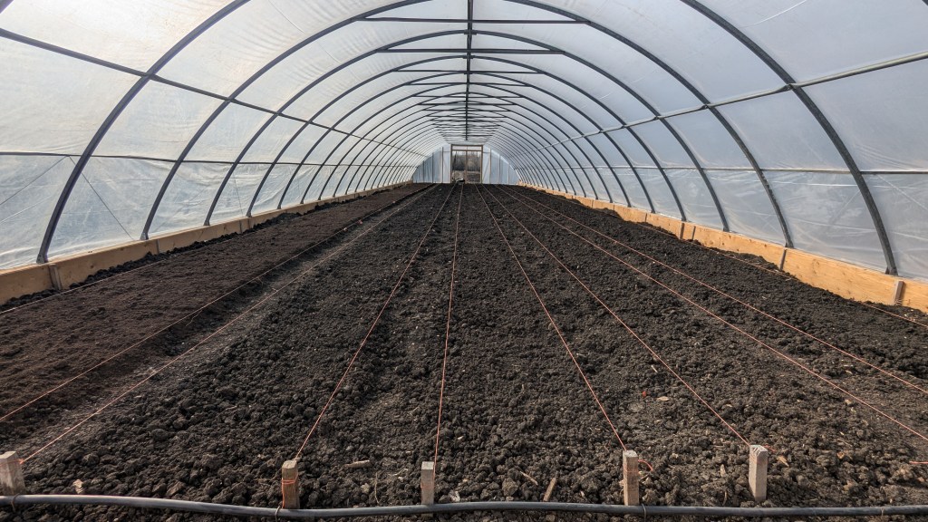 We were also able to do an initial soil prep inside, and turn our focus to how exactly we’re going to plant in here, what the best bed spacing is and things like that. I’ve been thinking of this for some time but there’s nothing like seeing the blank canvas of soil in front of your eyes and having to go through the thinking process once again of “how exactly is this going to work.