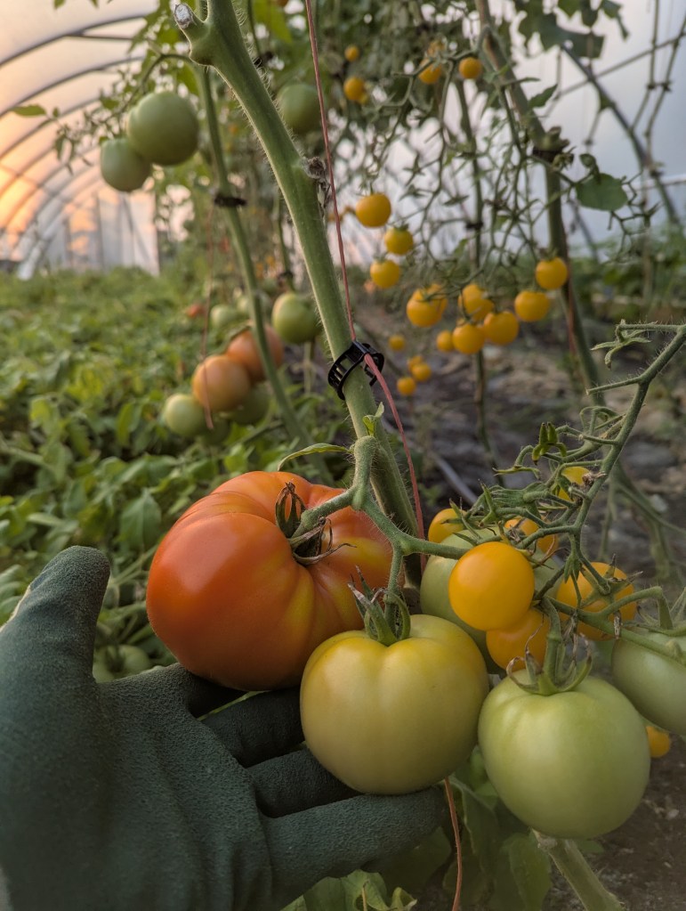 July temps in early May is a bit scary, so the weather has accelerated all of the goings-on at the farm and we’ve entered Ludicrous Speed mode. That might not be the greatest thing for our spinach and broccoli, but it has meant that we’ve fired everything into the new greenhouse and we are, finally, off to our first season with protected culture.